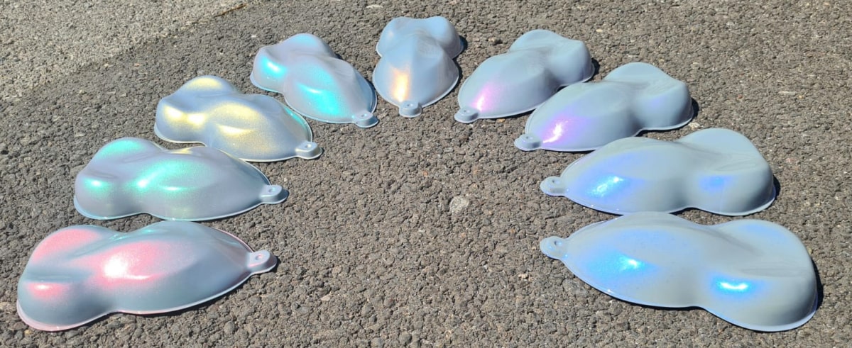 O kit GHOST é um sistema de pintura de três camadas com uma base de cor + uma cor pérola refletora GHOST transparente e um verniz de dois componentes