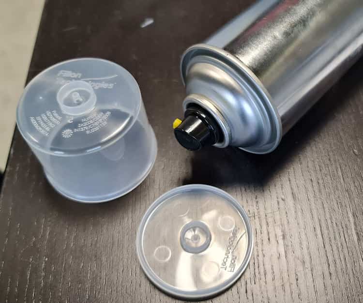 O aerossol recarregável SPR-CAPS inclui uma cápsula de enchimento (composta por dois elementos) que também serve como tampa.