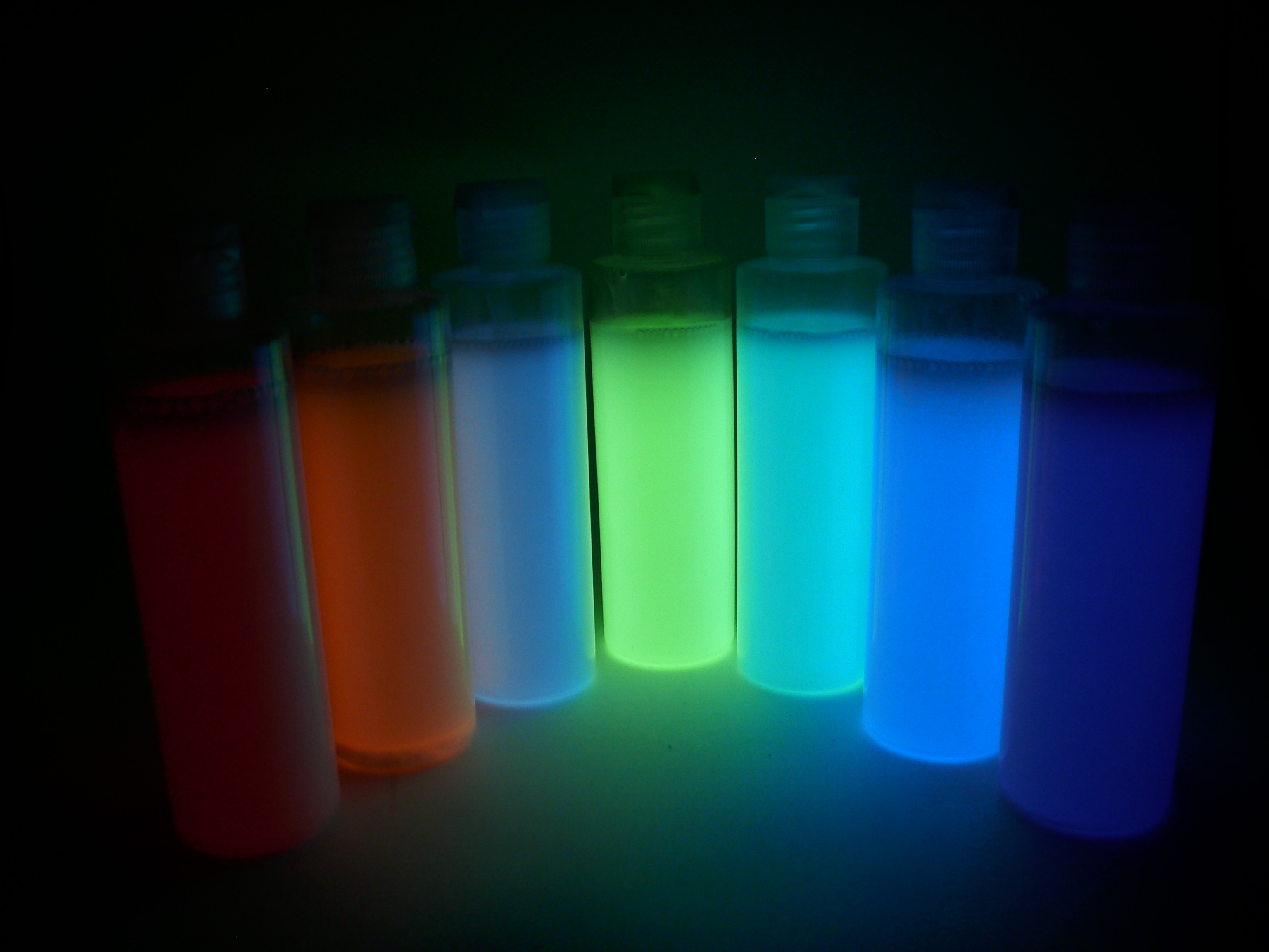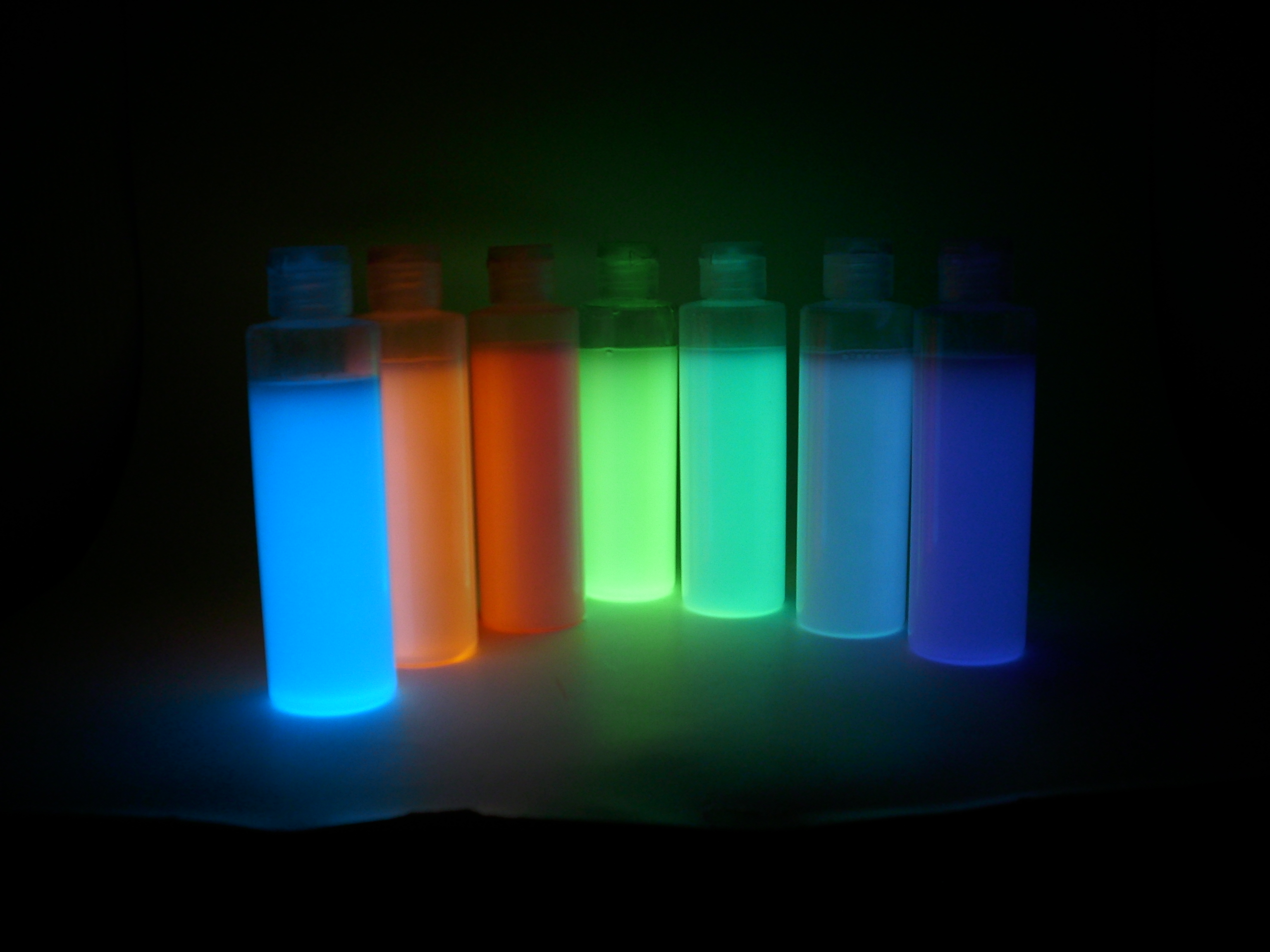 Quanto às outras cores, apresentam níveis variáveis de fosforescência, muito mais fracos