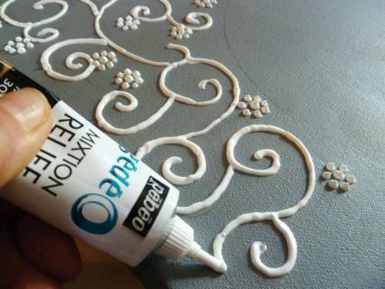 A cola para douramento - Mixtion Relief aplica-se diretamente com o tubo, sobre qualquer suporte.