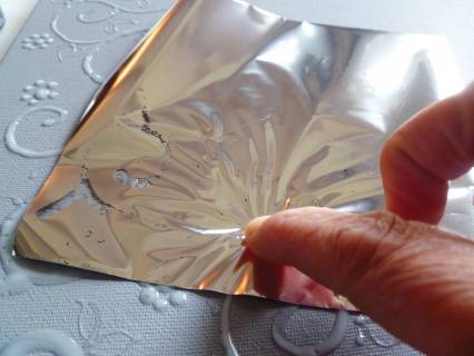 Deixar repousar cerca de 1 ou 2 horas em função da espessura da camada em relevo desejada, e depois recobrir o suporte que levou a cola com as nossas folhas.
