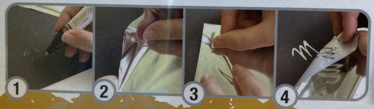 Kit efeito espelho composto de 2 folhas efeito espelho (1 ouro e 1 prata) e marcador para colar estas folhas.