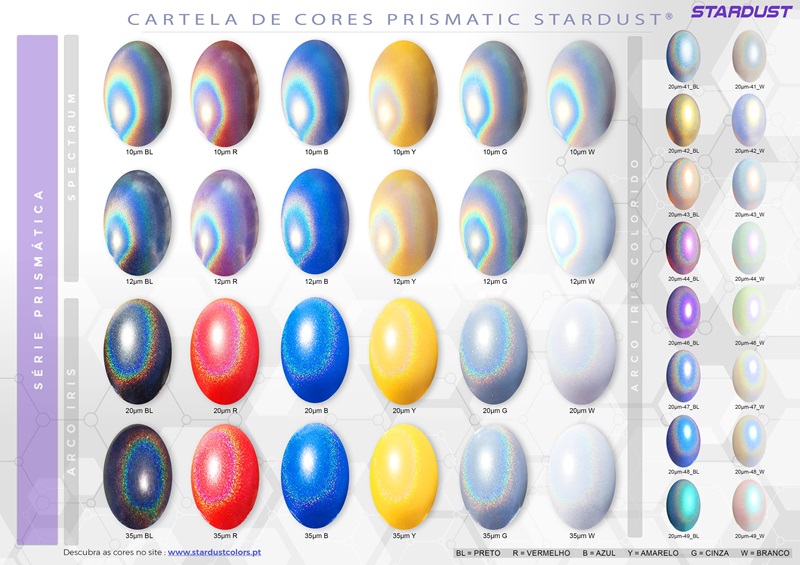 ♦Os SPECTRUM 10µm e 12µm apresentam reflexos coloridos clássicos para efeitos holográficos.