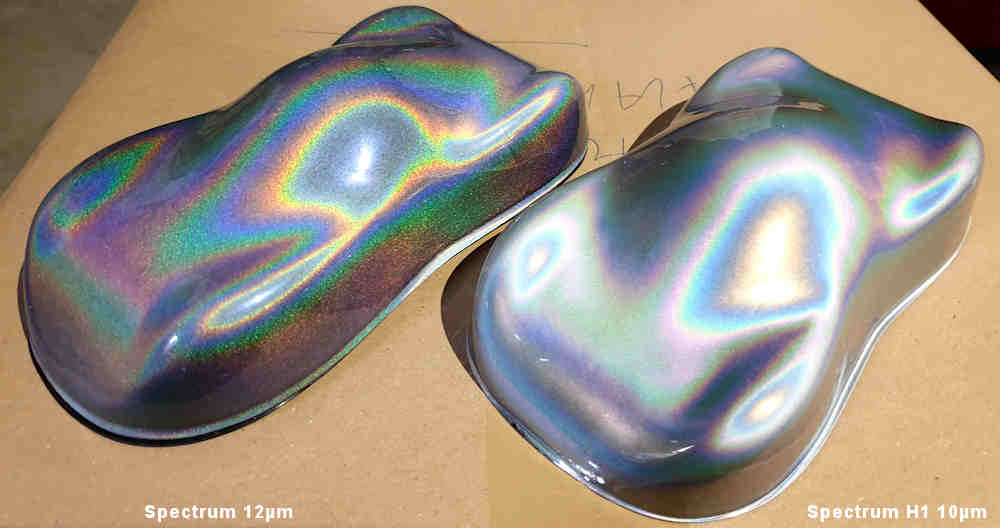 existe uma tinta à base de solvente, produzindo um efeito holográfico ultrafino disponível em 2 tamanhos (20µm e 35µm)