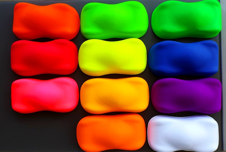 Cores radiantes e intensas feitas com pigmentos fluorescentes puros.